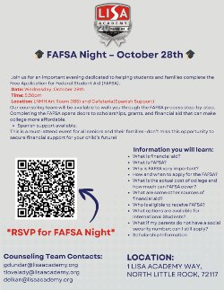 Our Counseling Team will be available to provide assistance and answer questions as families work independently to complete their FAFSA. This hands-on session is designed to help you navigate the process confidently and ensure your student is ready to access grants, scholarships, and financial aid for college.